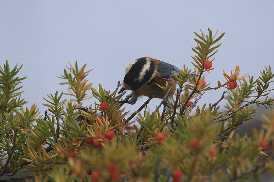 作業員詰所付近トイレ横のイチイにはまだヤマガラがたくさん来て盛んに実を食べています。