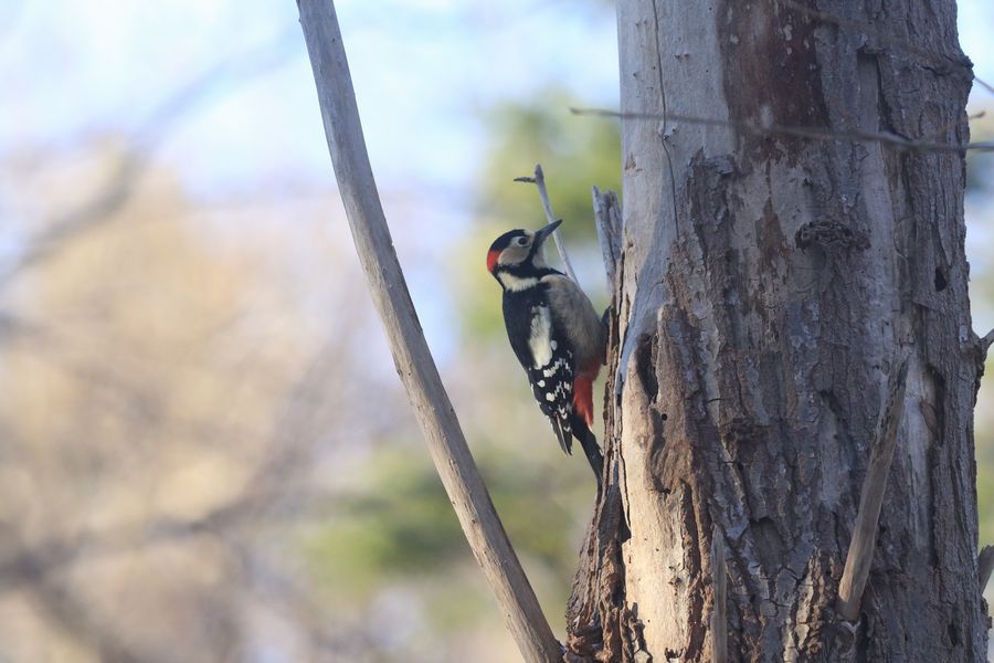 オオアカゲラは一度採餌を始めると長く同じ辺りにいることが多く、同一の2、3個体のこととは思いますが、このところ観察頻度はアカゲラよりも高いかもしれません。