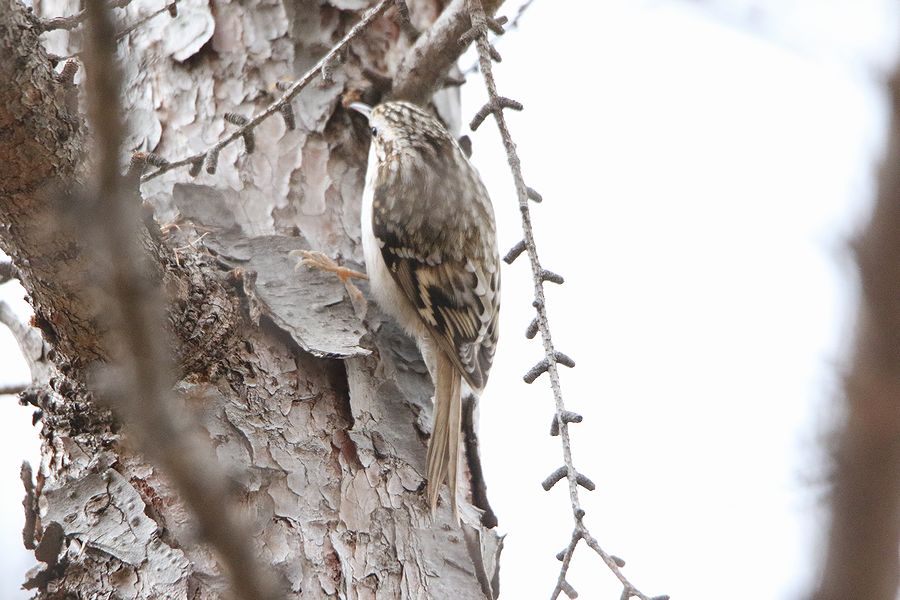 観察機会は多いですが、今日はカラマツの枝についた何かをさかんについばんでいました。