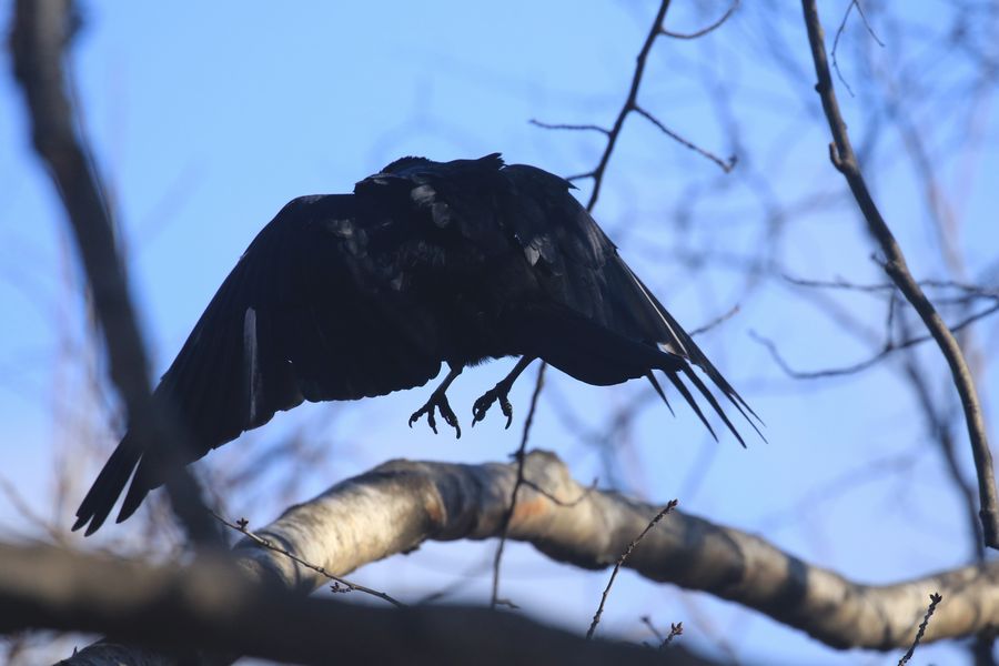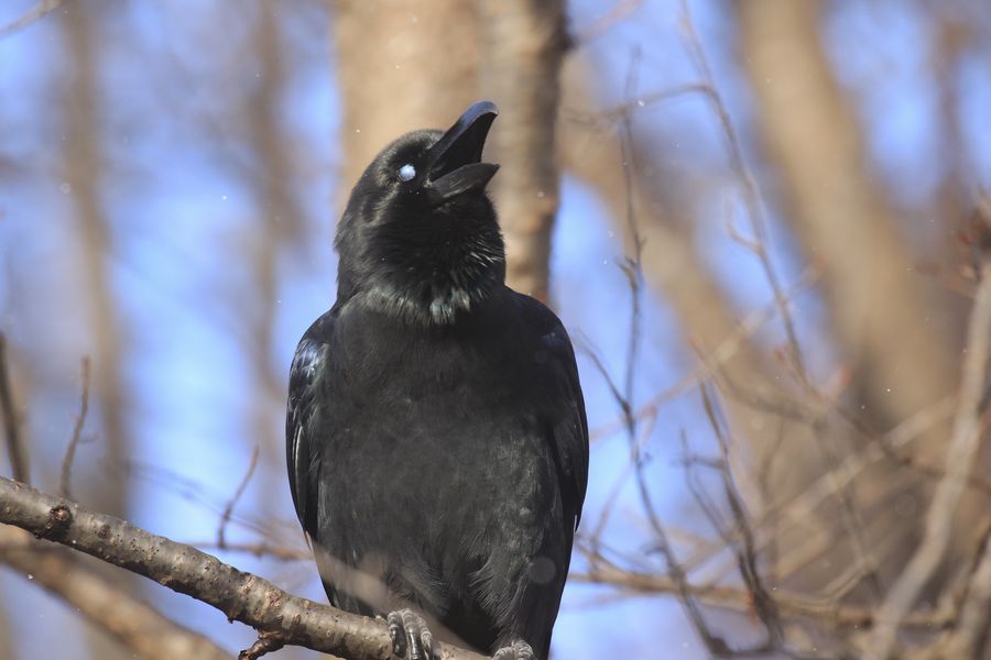 山でねぐらをとり、街に餌を探しに行く途中で旭山に寄っているのかもしれません。