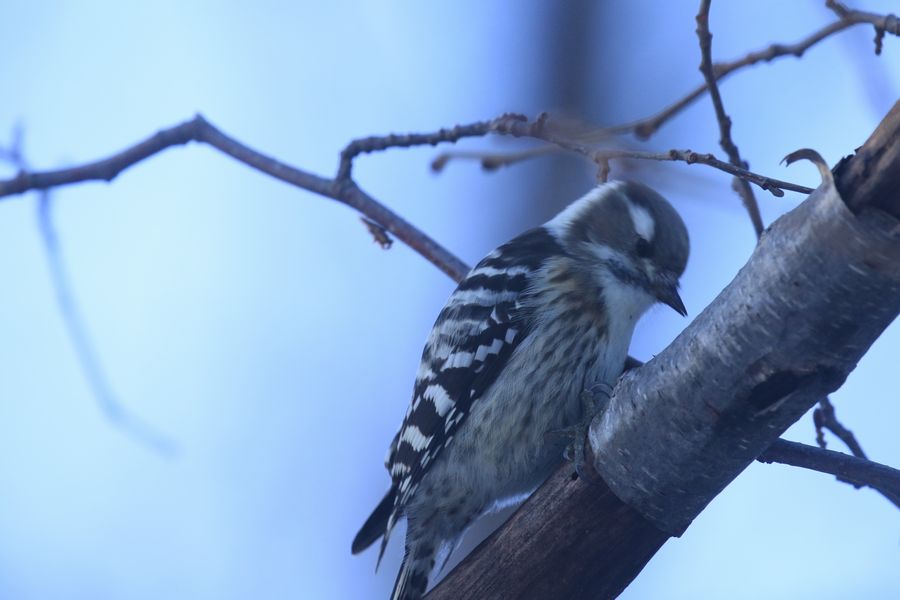 このところ森の家近くの決まったシラカンバの木に毎日のように来ていて、昨日、今日と同じ木で同一個体の可能性がある雌1羽を観察しました。