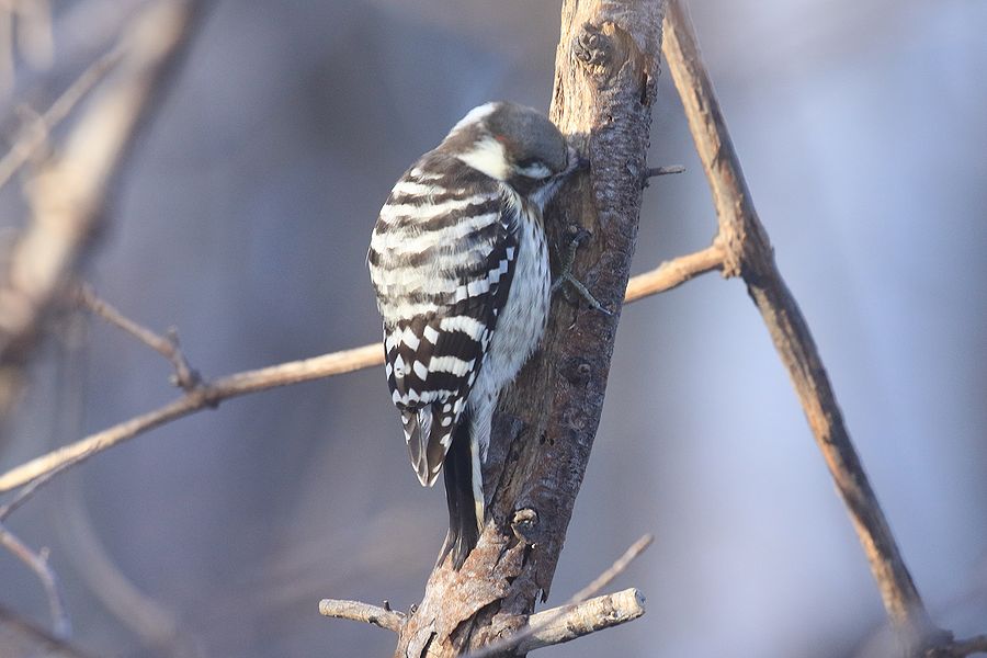 このところ雄が撮れたという情報が幾つかありましたが、もしかすると冬の間は雄の後頭部の赤い羽が見えやすくなるのかもしれません。