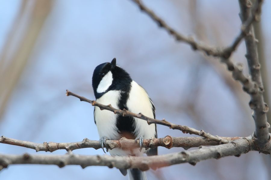 昨日は8時半過ぎに風の丘周辺に10羽以上がカラ類混群(アカゲラ、コゲラ含む)とともに現れ、5分ほどその辺りで餌を探して滞在した後、西側の旭山都市環境林と東側のつり橋方面に群れが2つに分かれ、西側の群れはその30分後に旭山都市環境林で観察した人がおられました。