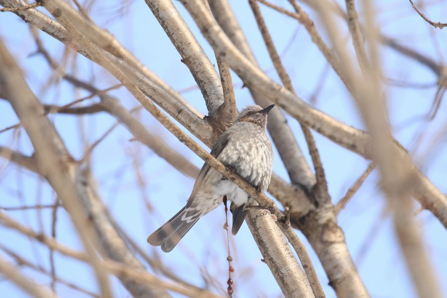 2月23日のスノーシュー観察会の際には、レストハウス近くの八重桜並木の辺りにあるヌルデの木の実を食べに来ていた1羽を15mくらいの近さで見ることができました。