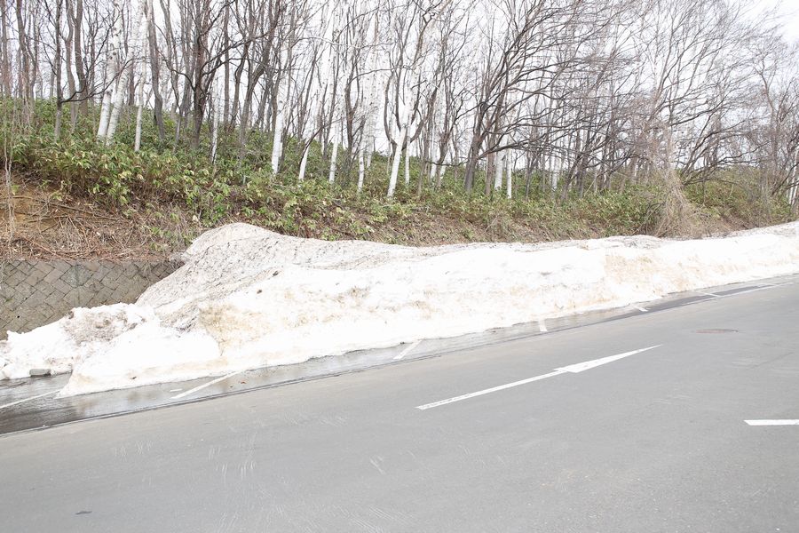 第1駐車場西側斜面沿いにはまだ大量の雪が残っています。