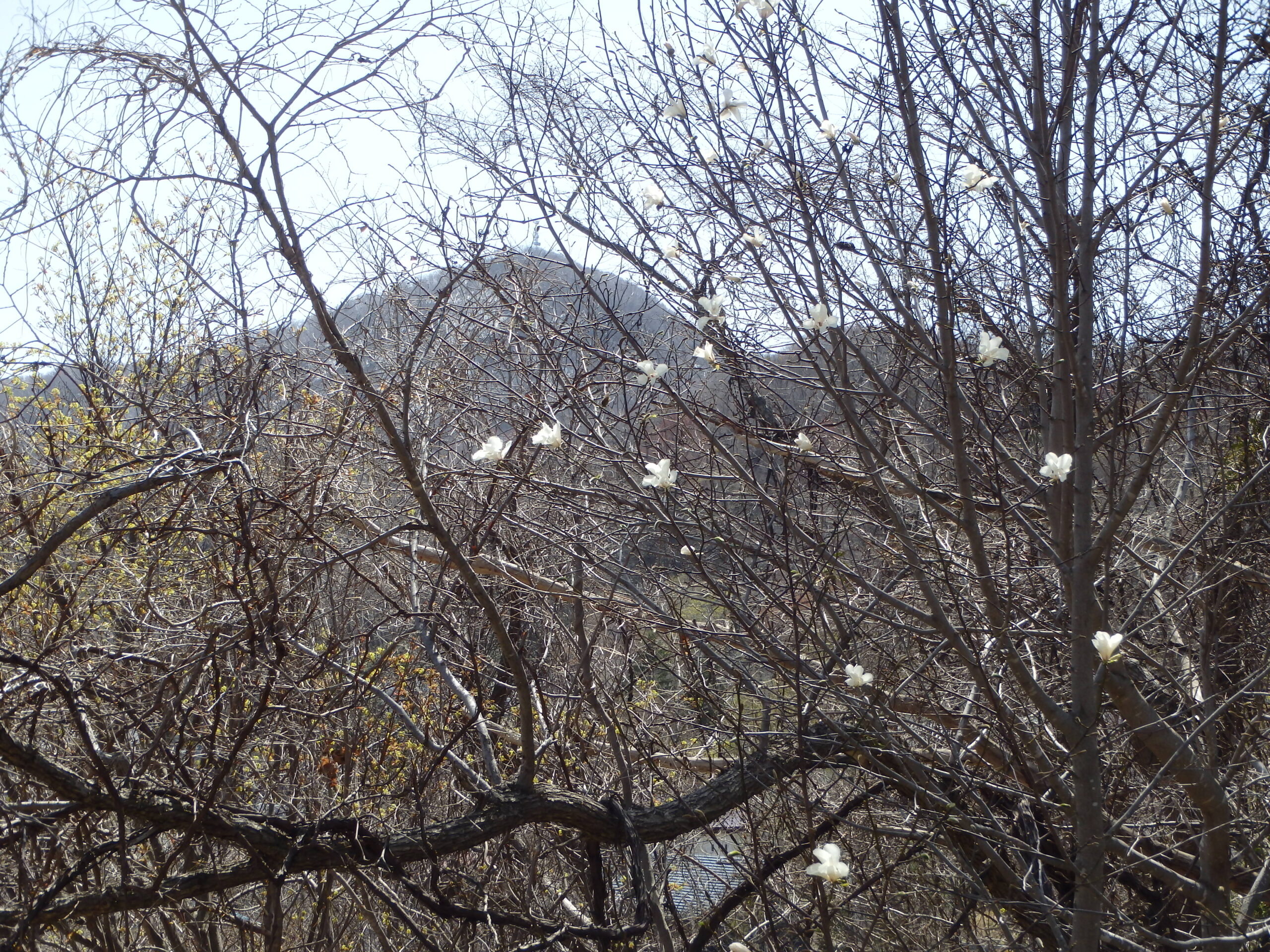 森の家の前の、キタコブシの花も綺麗に咲いています。