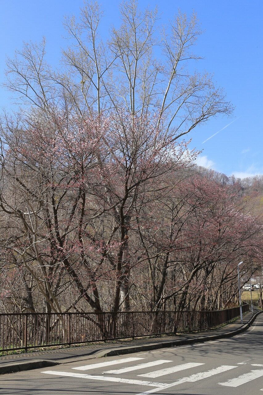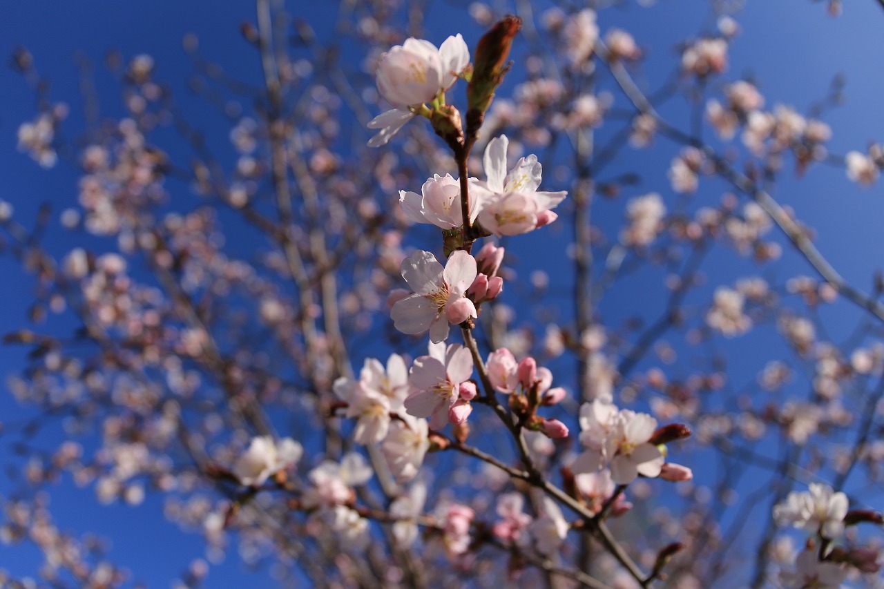 第1駐車場に続く桜並木も、一部は開花していますがまだこれくらいです。