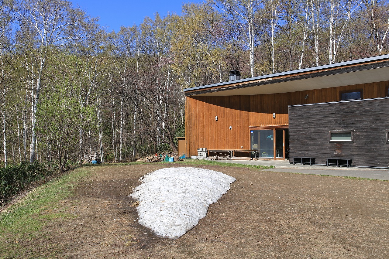 森の家の前にはまだ少しだけ雪が残っていますが(冬の除雪で雪が高く積まれたため)、園内の散策路にはもう雪はなくなりました。