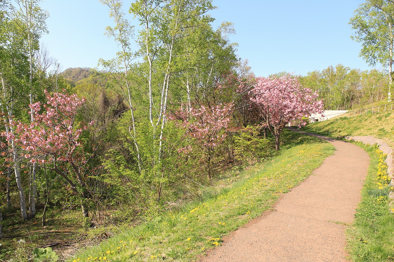 レストハウス横の八重桜並木も一気に満開となりました。