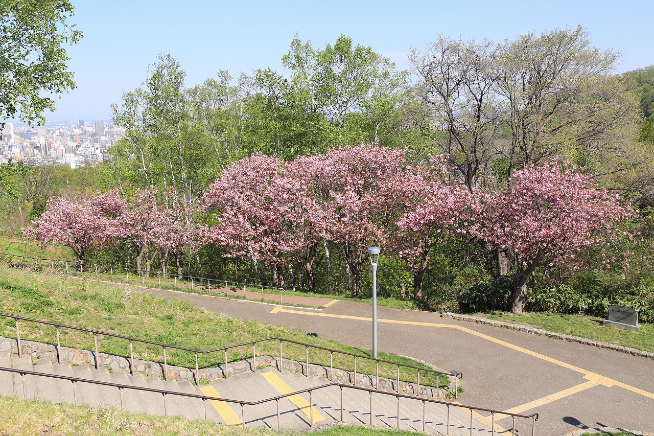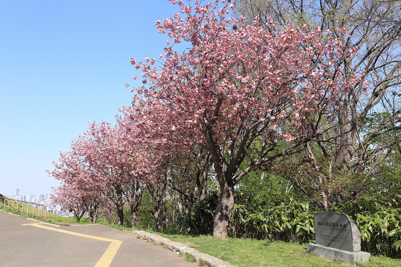 2022年5月10日火曜日、本日の旭山記念公園の八重桜の様子です。