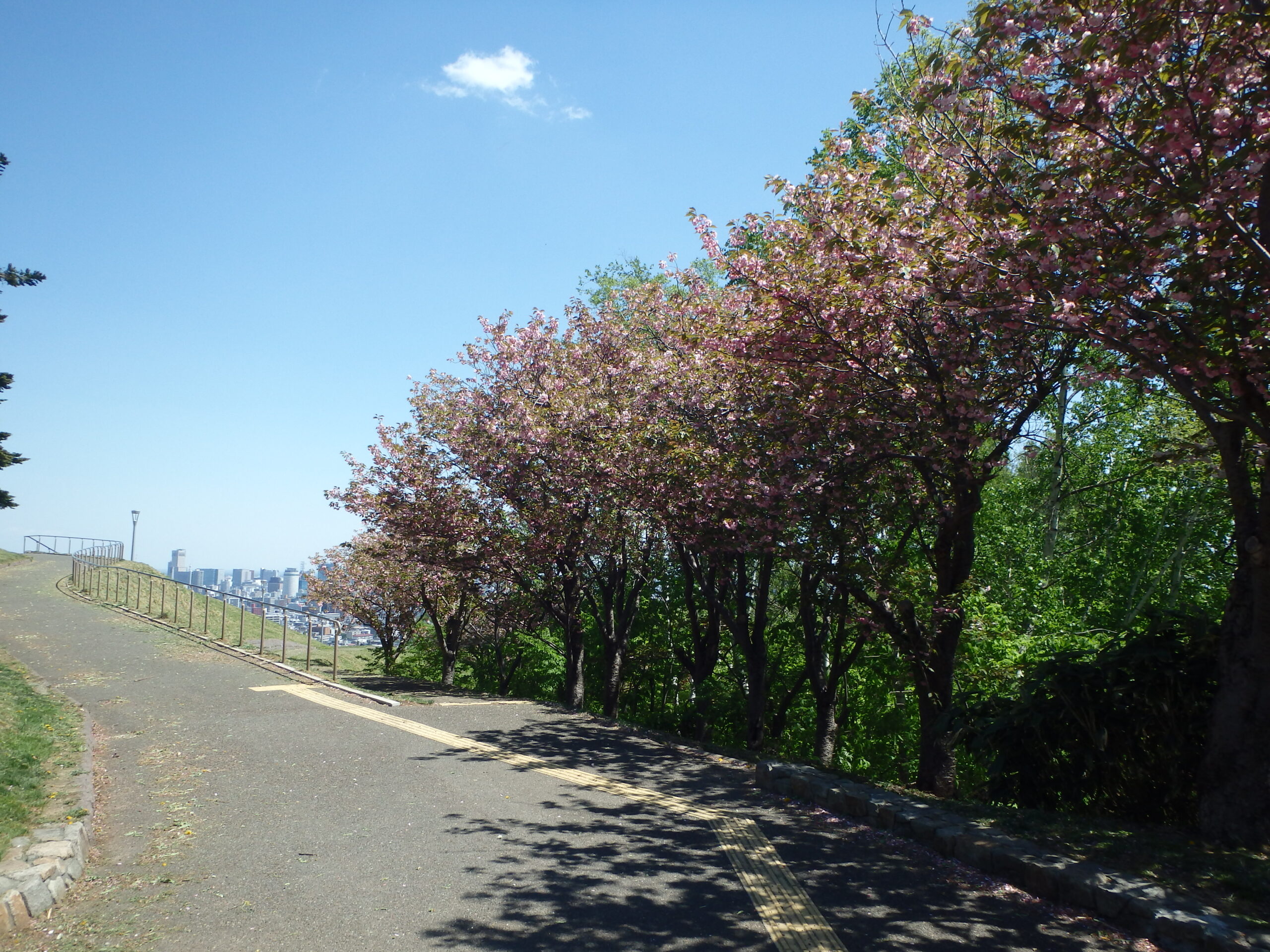 2022年5月16日月曜日、本日の旭山記念公園の八重桜の様子。