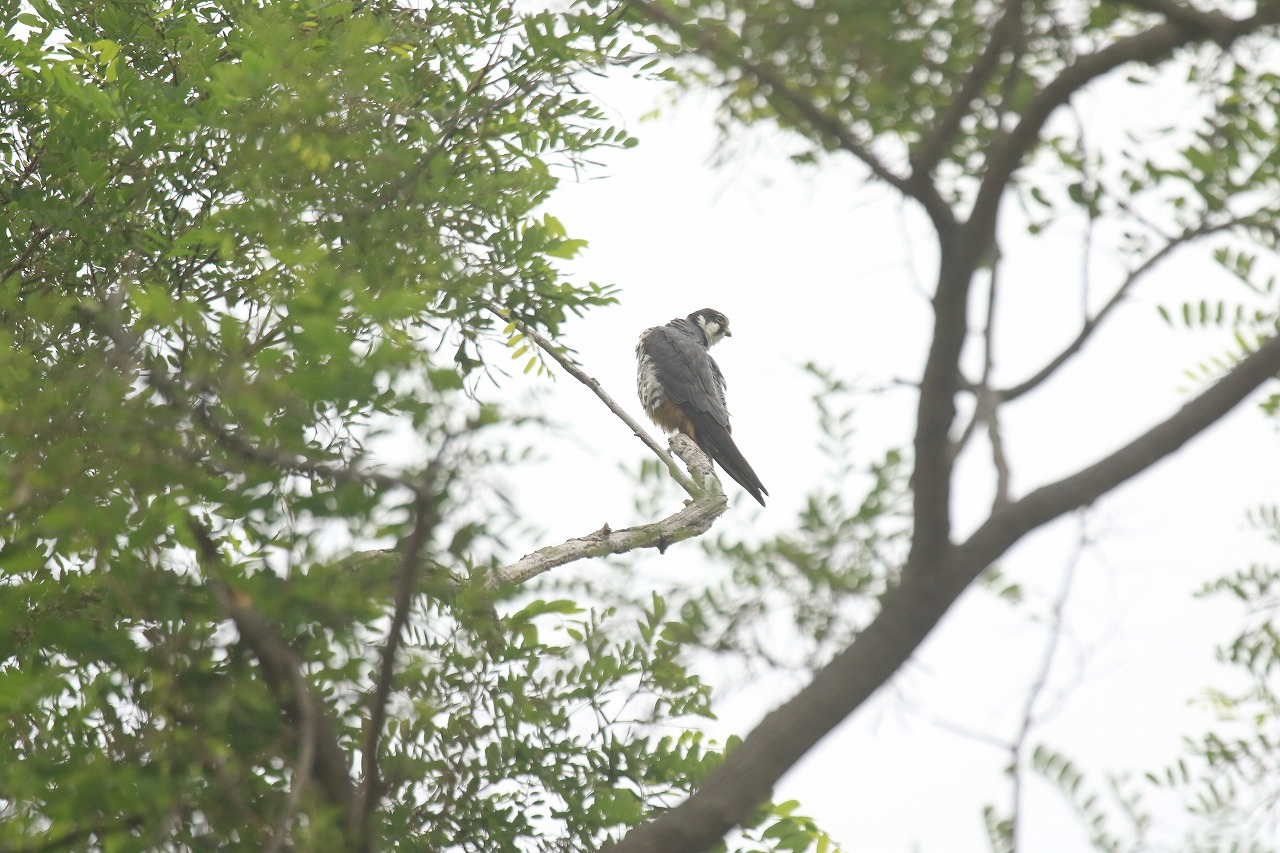 先日、ちびっこ広場上の高いニセアカシアの木に飛んで来て羽づくろいを始め、20分ほど同じ場所に留まっているのが観察されました。