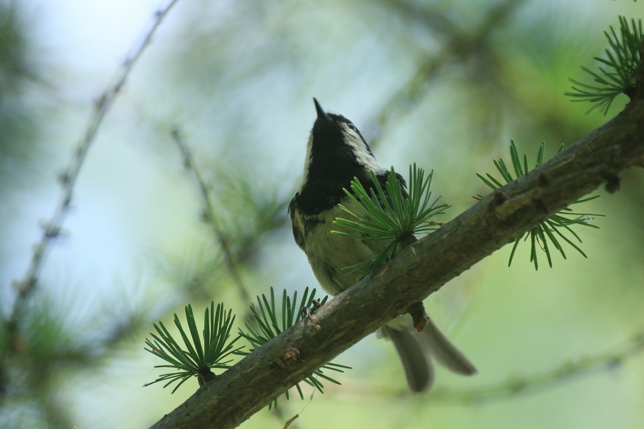 写真は森の家の近くのカラマツに来たところで、この時周りにもう1、2羽いました。