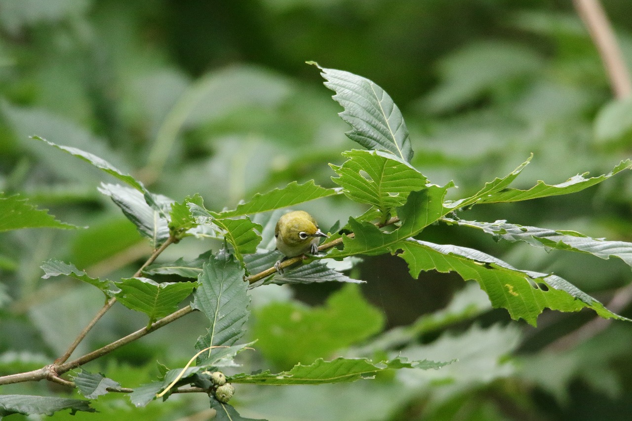 囀りは聞かれなくなりましたが、「チュッ」という地鳴きが笹薮から聞こえたらその音を追うと姿が見られることがあります。
