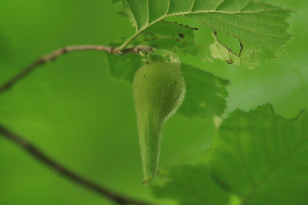 ツノハシバミはヘーゼルナッツを採取する栽培種の近縁種で、同様の実がなります。