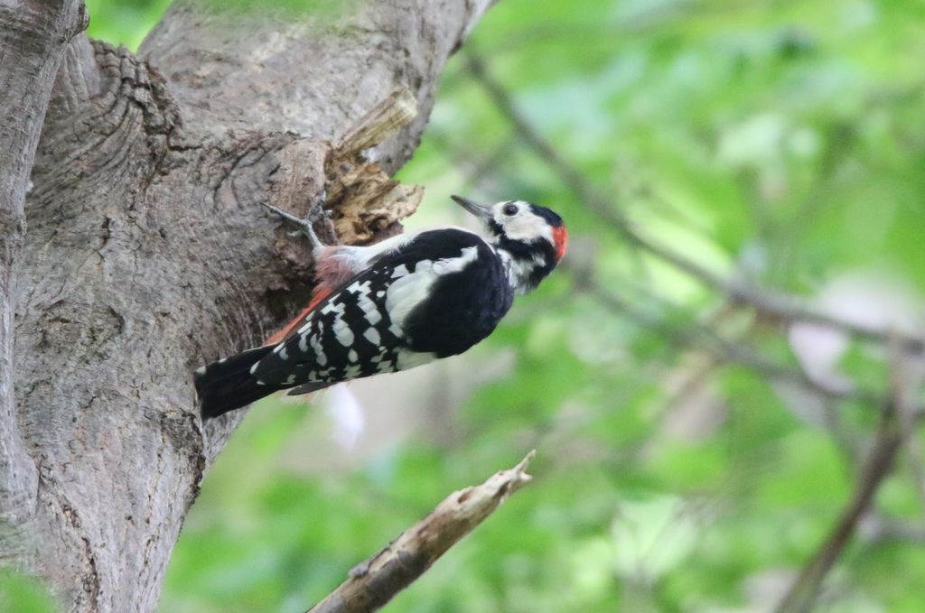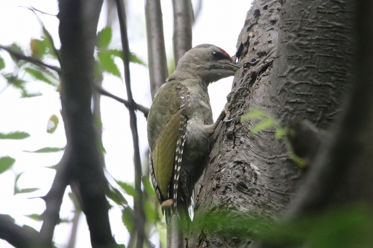 オオアカゲラ雄の幼鳥が旭山記念公園内でこれだけ見られるのは今までほとんど例がなく、今年はこの先も観察できそうです。