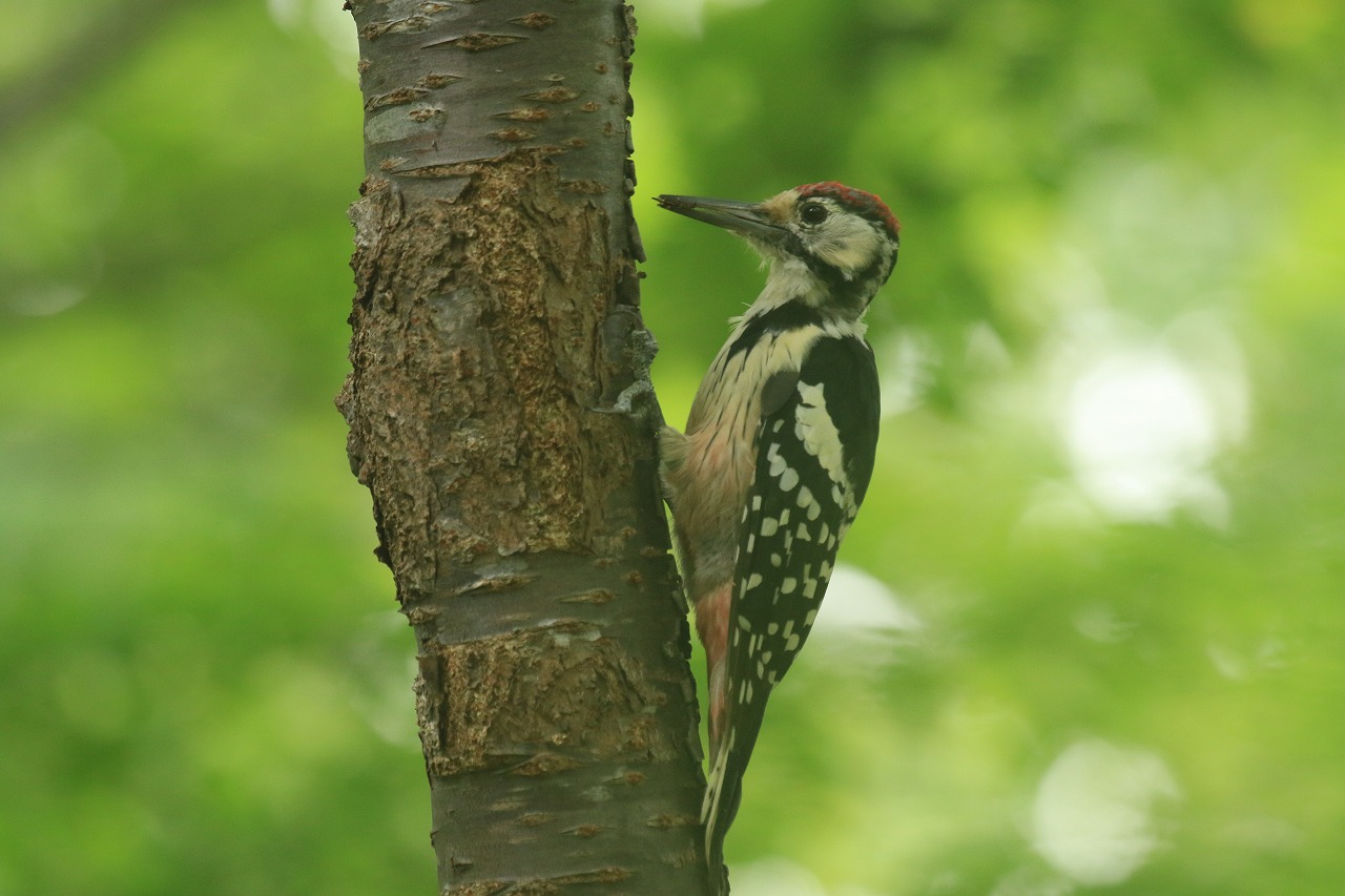 アカゲラも幼鳥が色合いがだいぶ育ち成鳥に似てきました。