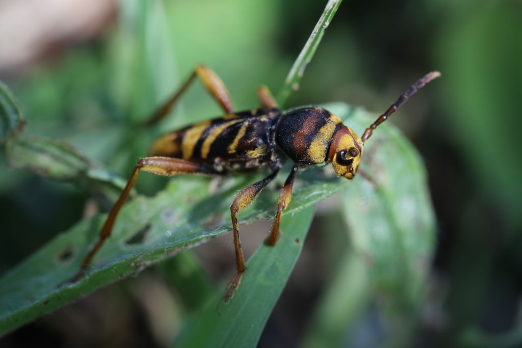 スズメバチに擬態したカミキリムシ、トラフカミキリが園内で観察されました。