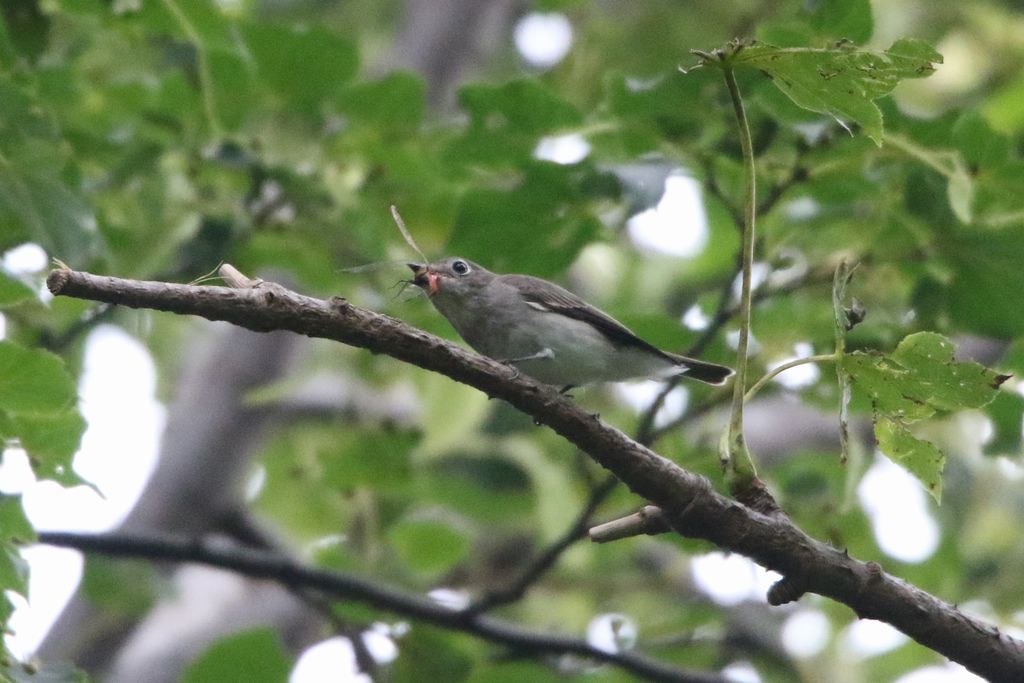 コサメビタキは鳴き声を出していないことが多いですが、梢付近の木の外側をひらひらと飛び割と目につくので、見つけるのはそれほど難しくはないです。