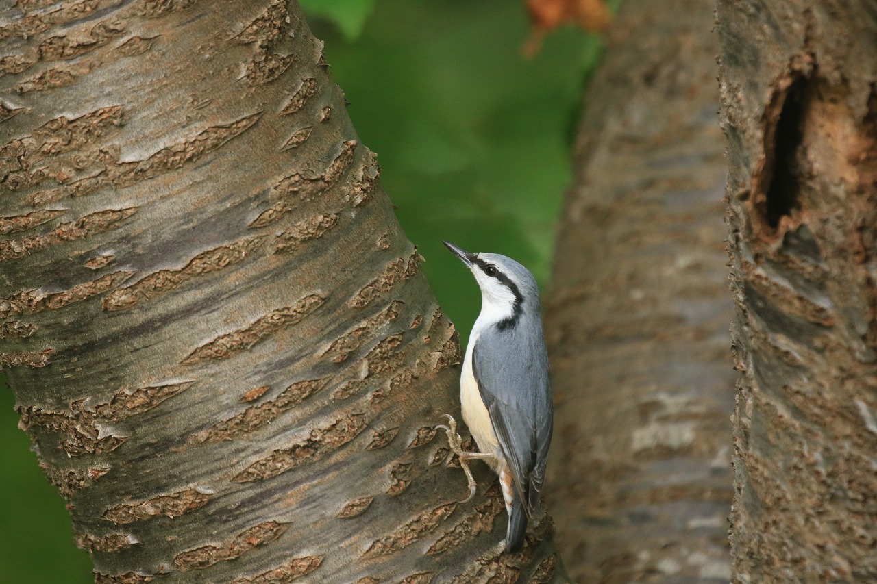 木の上の方で「チュッ」という弱い声で鳴き、時々あの独特の「テュッテュッ」という強い声でも鳴きます。