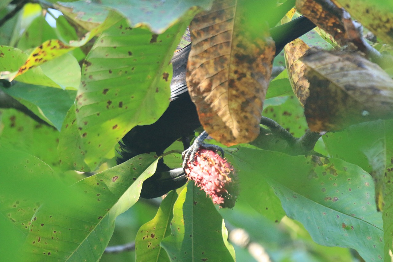 高い木の上の方にとまっていることが多い(ほとんど)ですが、時々高さ10mくらいにまで降りてくることがあります(それでもまだ高いですが)。