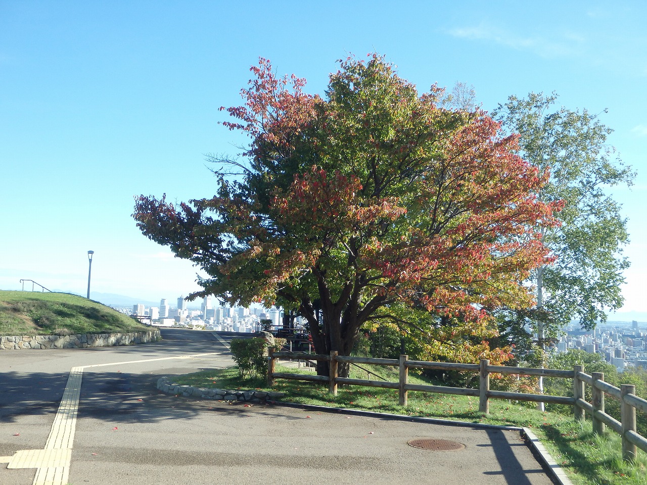 展望台一本桜、いくらかは紅葉が進んでいますかね。
