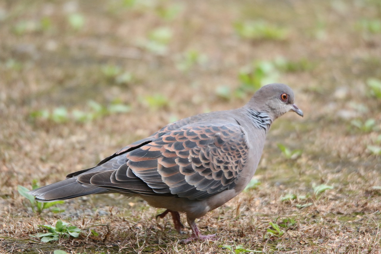 キジバトはもう「デデーホーホー」と鳴くことは少なくなりましたが、飛ぶ姿を見る機会は比較的多く、今日のように地面に降りて来ることもあります。