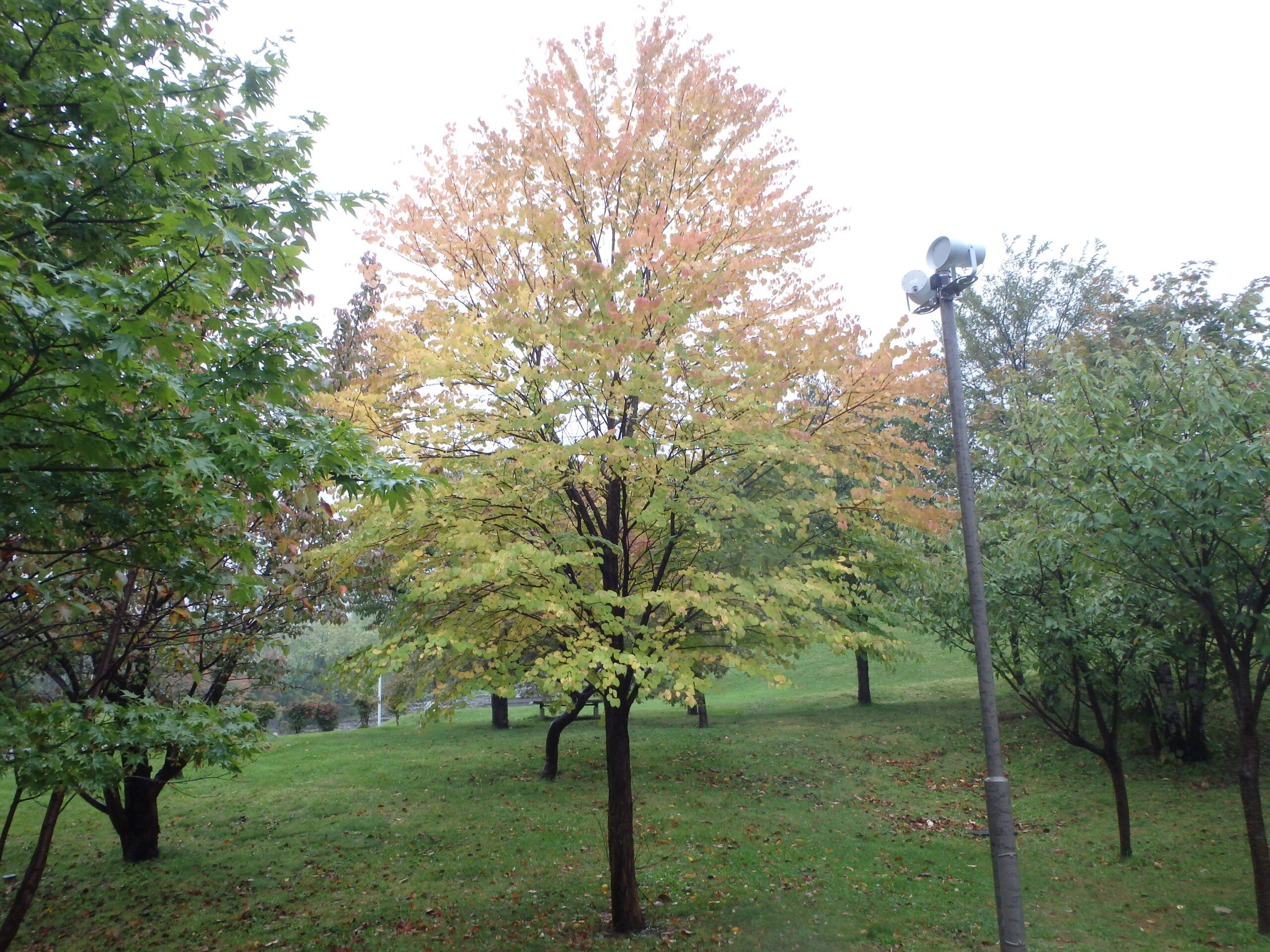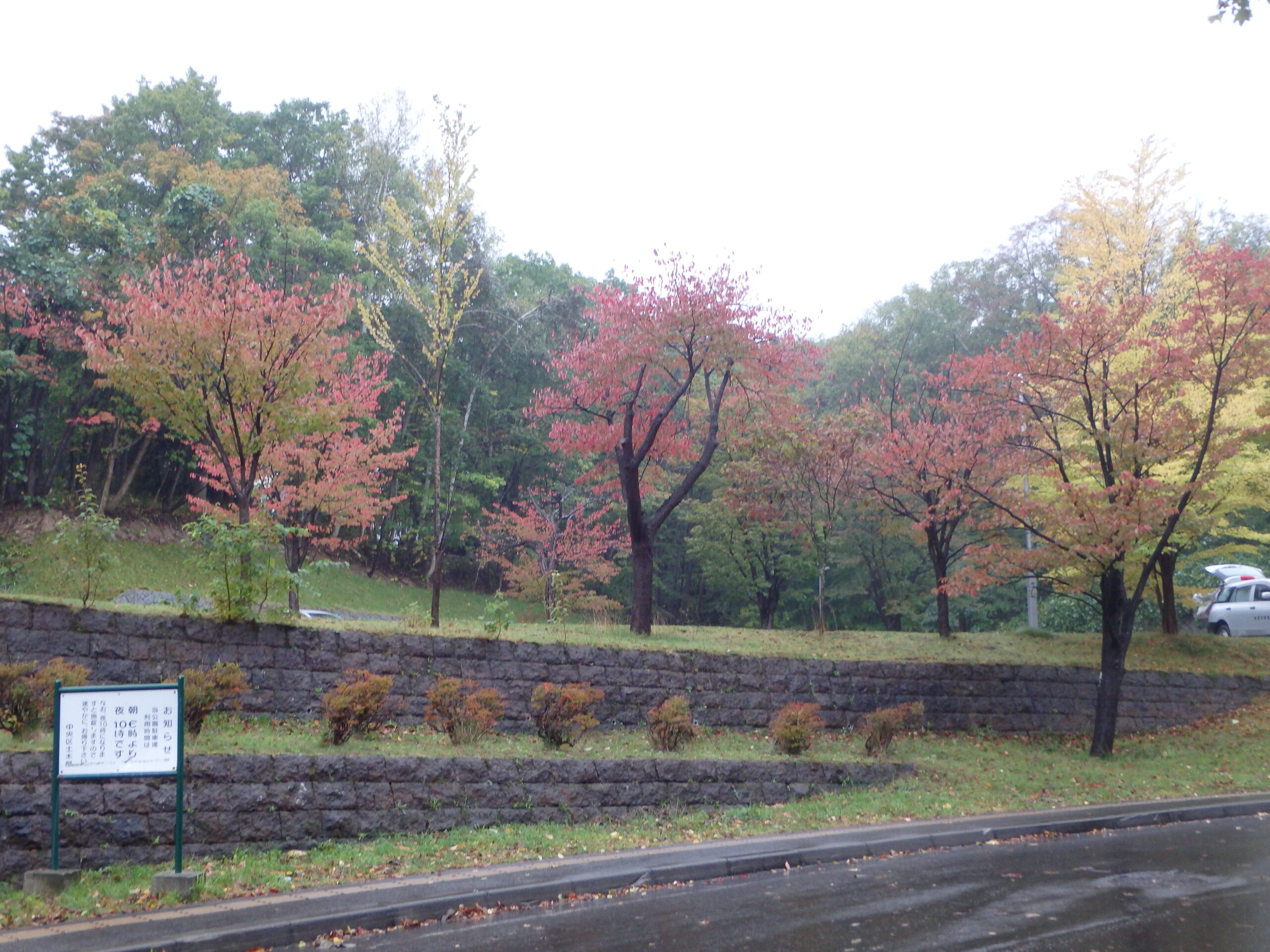 公園に入ったところ、第二駐車場の紅葉も、鮮やかに色づいてきてます。