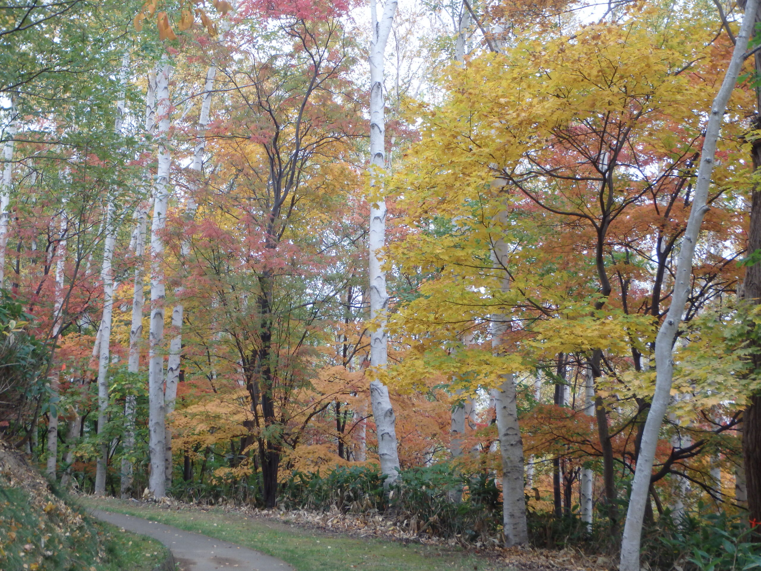 葉が落ちている木もありますが、綺麗に紅葉している木も沢山あります。