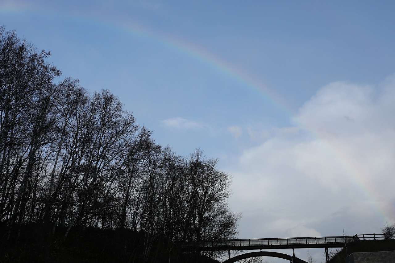 虹は一度消えかけましたが、後半は色がより濃くなり、二重の虹も見られ、20分以上出ていました。