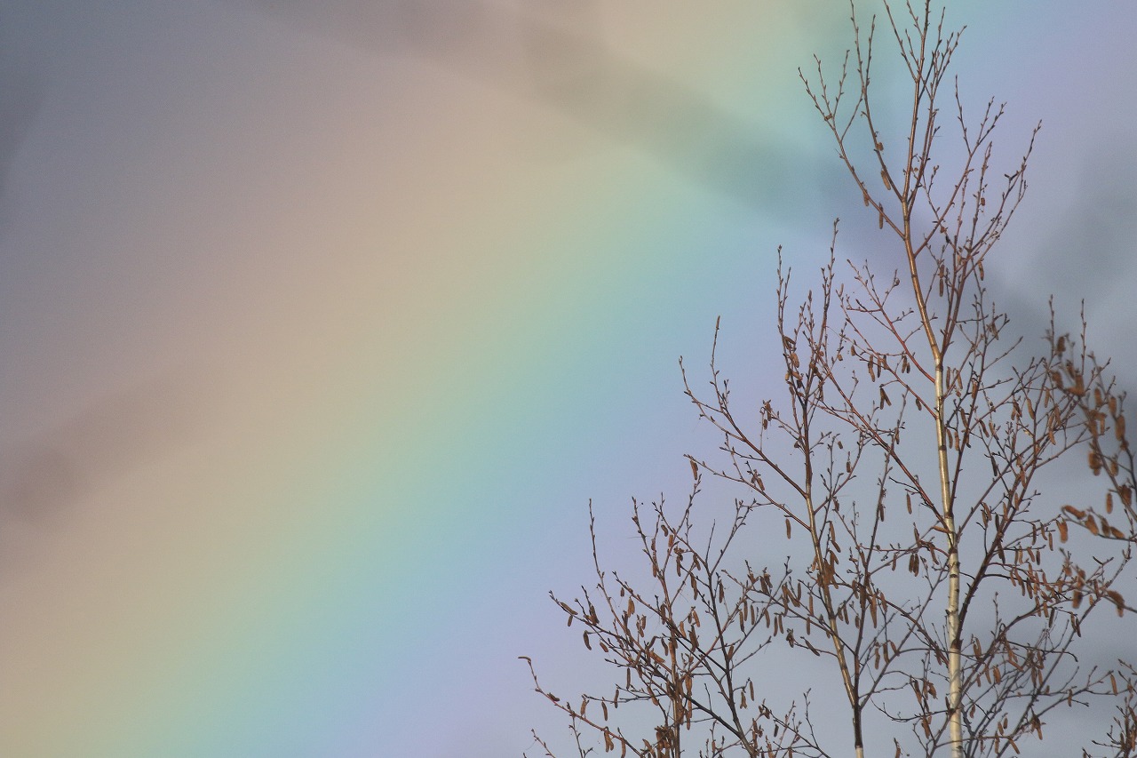 当時旭山では霧雨が降っていましたが、太陽の方向は晴れていて、北西の空に大きな虹がかかりました。