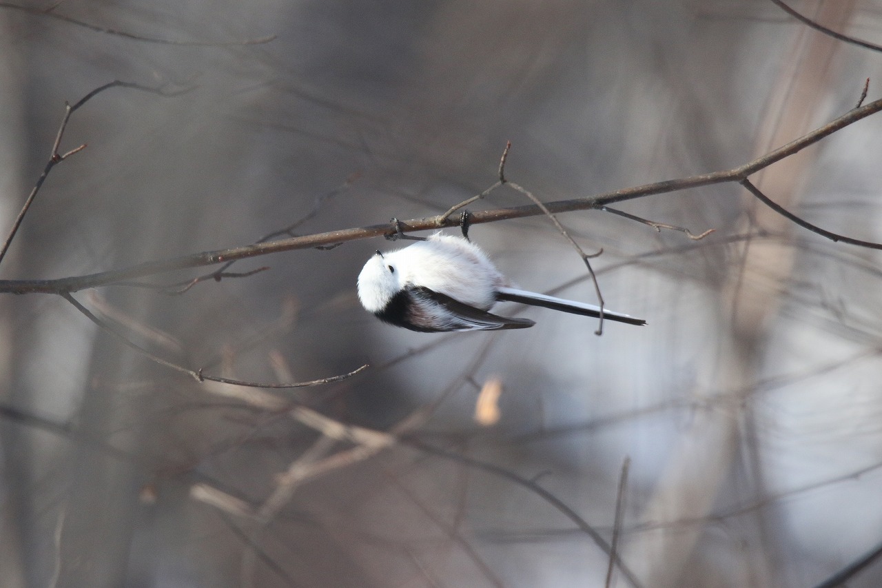 この時は翼の次列風切羽が浮き立つように白く見えたのでコガラではないかと思い、撮影し嘴を確認してコガラと判断しました。