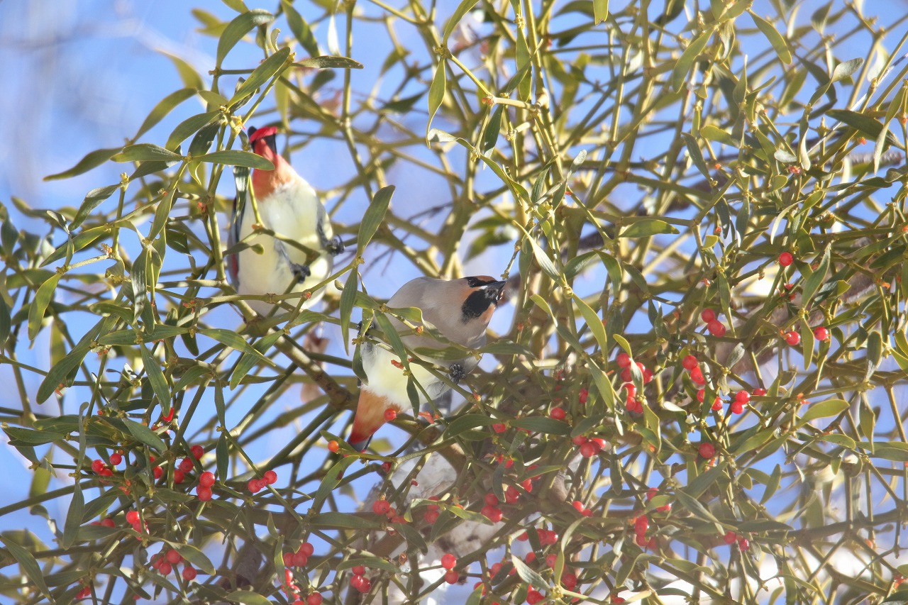 今年はまだ20羽前後が残っていて、今週は森の家南側の木にあるアカミヤドリギで見られる機会が多かったです。
