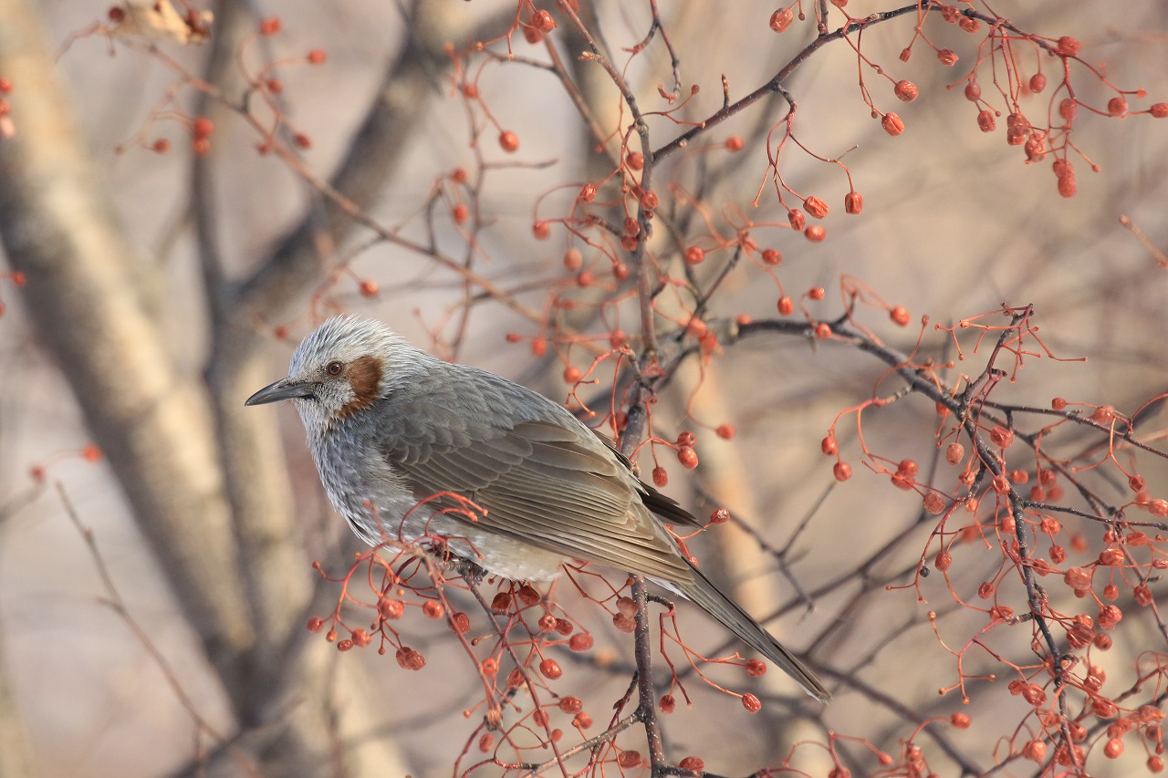 アズキナシの実は減ってはいますがまだあり、その数羽が代わる代わる食べに来ています。