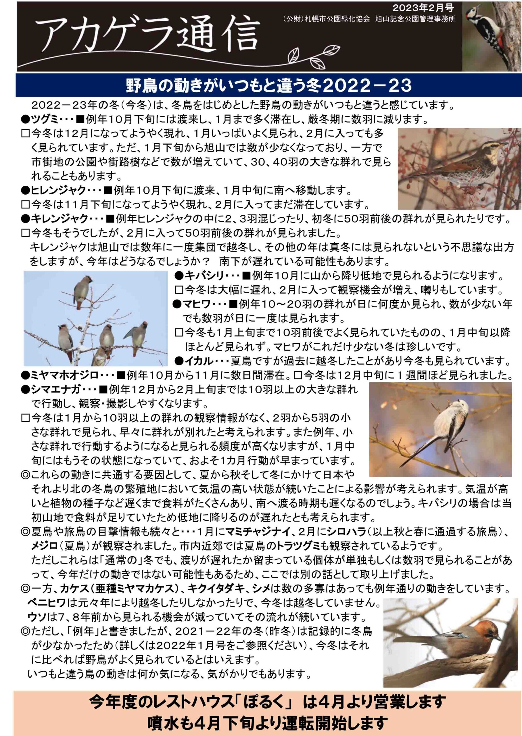 ◎アカゲラ通信2023年2月号