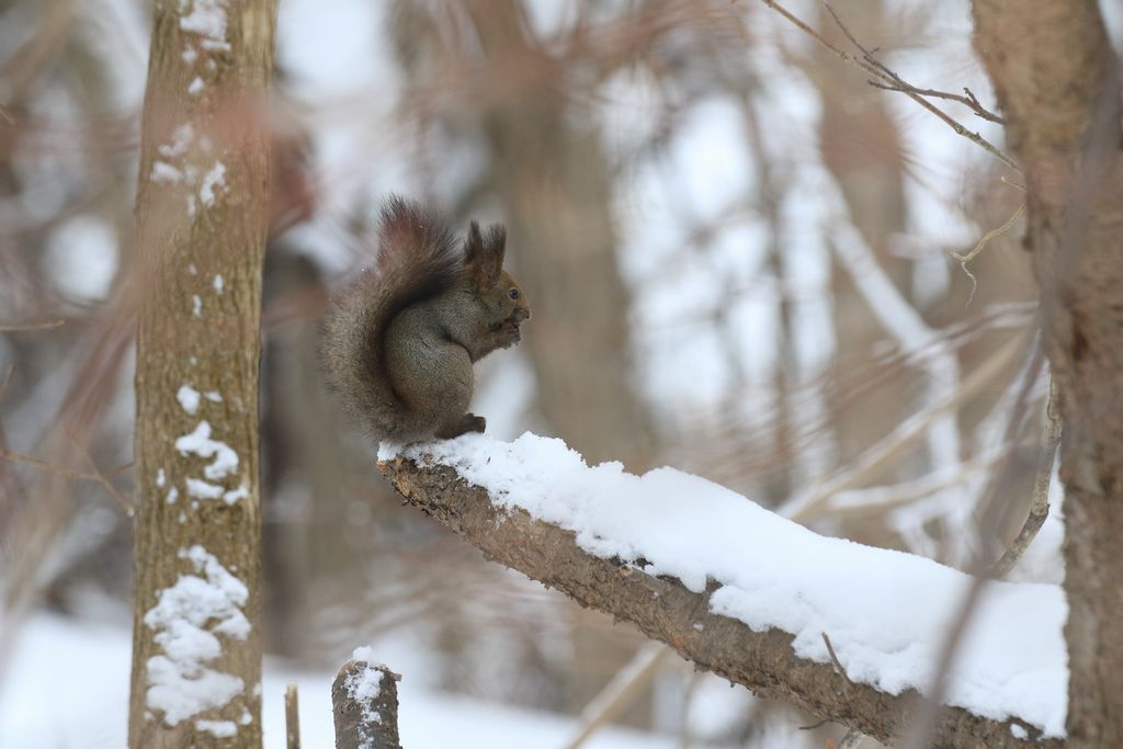 今朝はエゾリスの足跡が指までくっきりと残っていました。