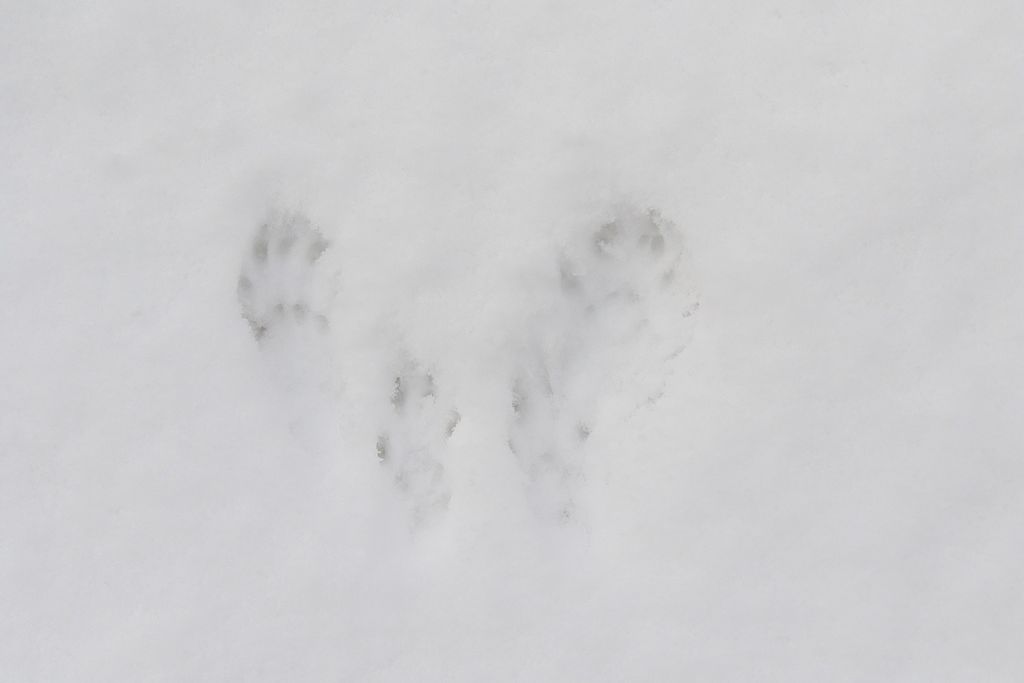 前日に気温がプラスに、朝方にマイナスになって雪面が凍ったところに薄く雪が積もると、動物の足跡がくっきりと残りやすくなります。