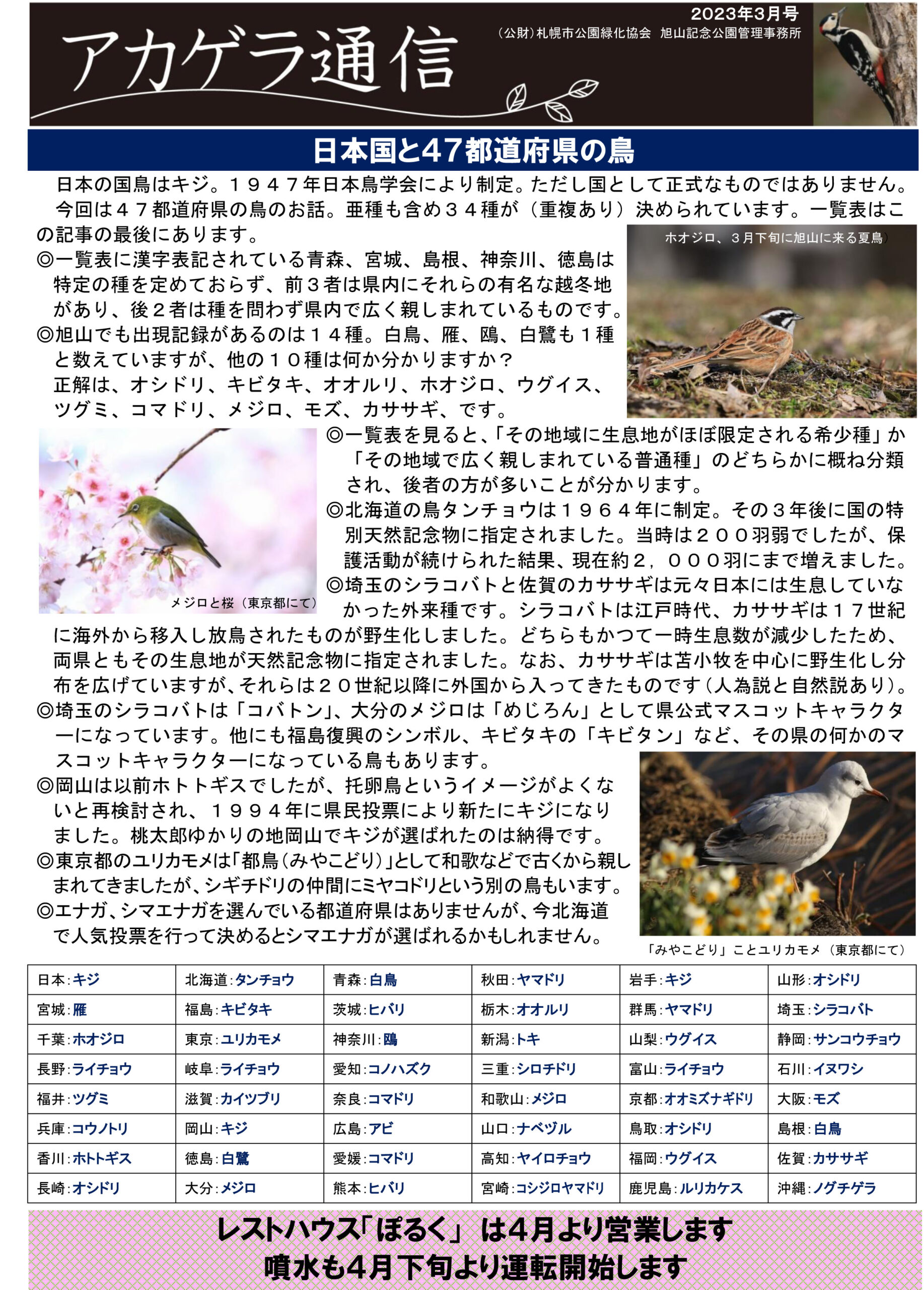 旭山記念公園野鳥情報、2023(令和5)年3月10日金曜日。