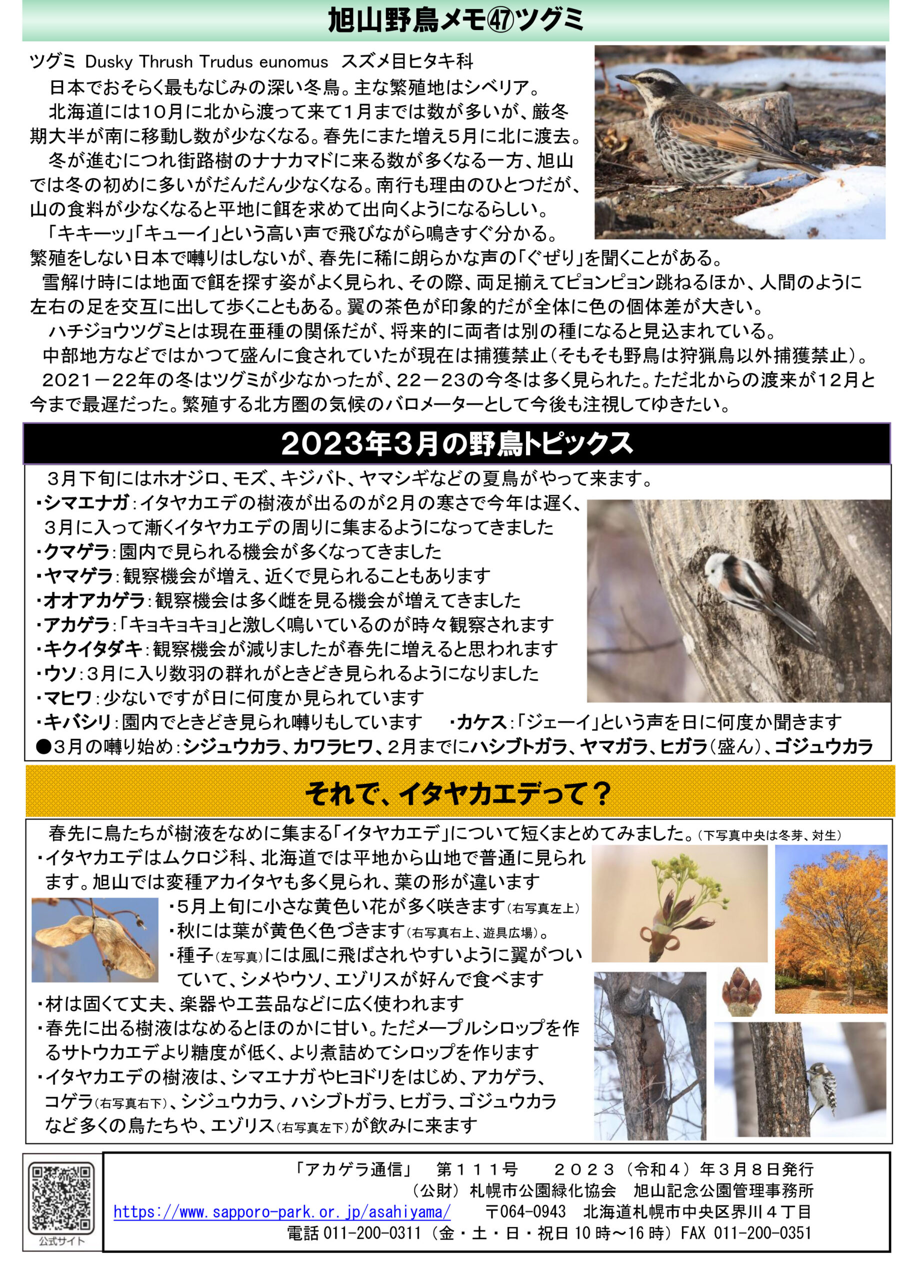 この野鳥情報は、旭山で野鳥観察をしておられる方からご提供を受けたものも含まれています。