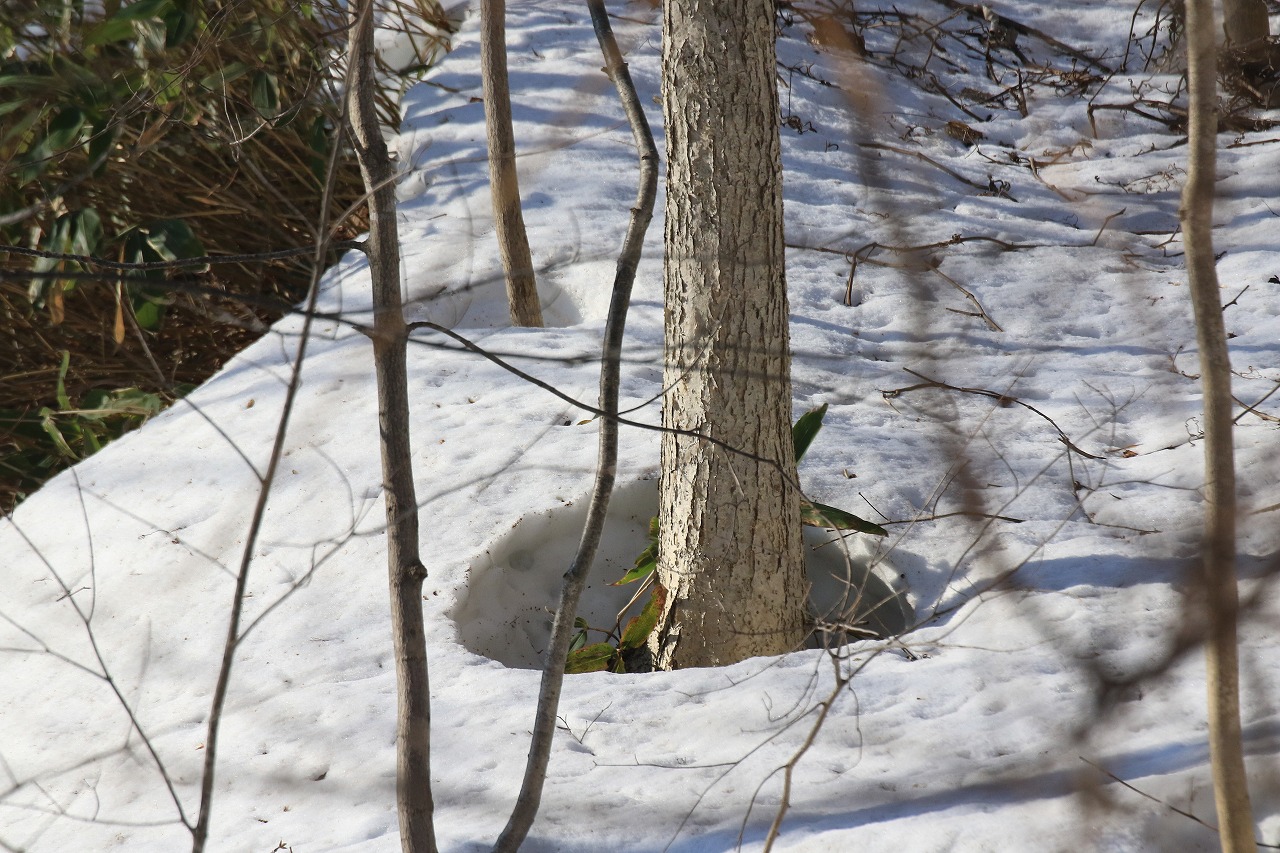 木の周りに穴が開く、「根開き」「根明け」「根開き」などと称され、春の季語にもなっている春を感じる現象。