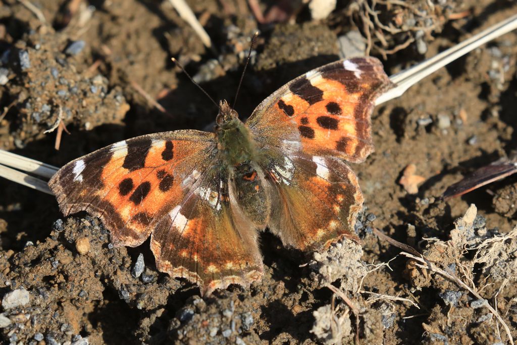 成虫越冬する蝶で、今年は3月中旬から見られていました。