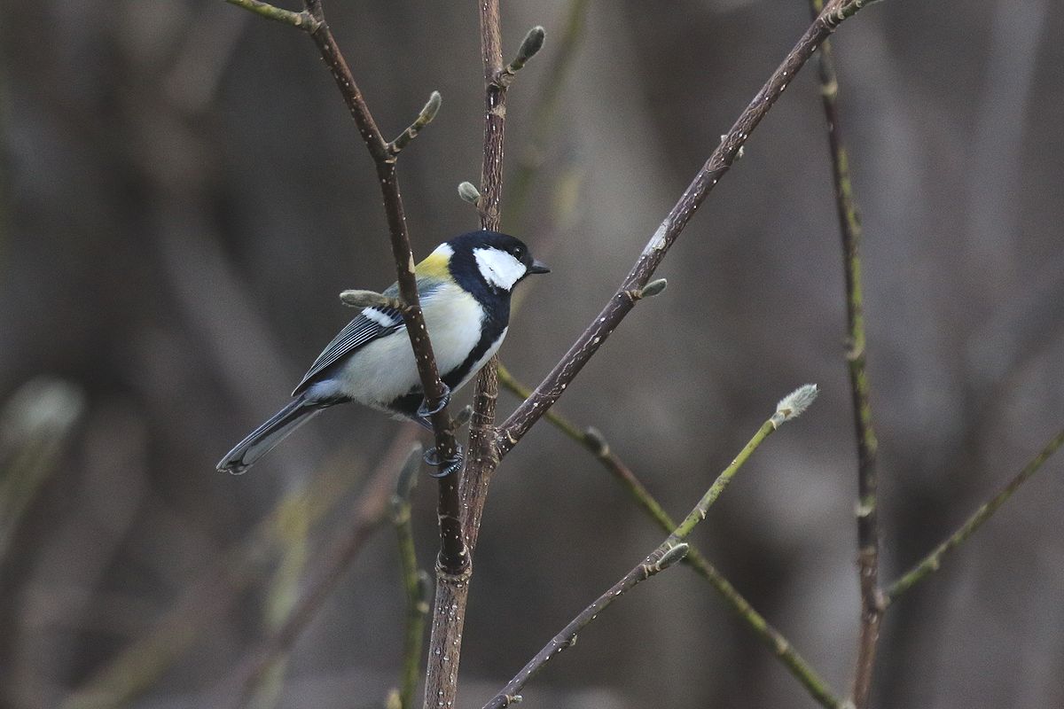 写真は森の家南斜面のキタコブシの枝にとまっているところで、この写真には大きな花芽は写っていないですが、この木には花芽がついており、4月下旬には花が見られそうです。