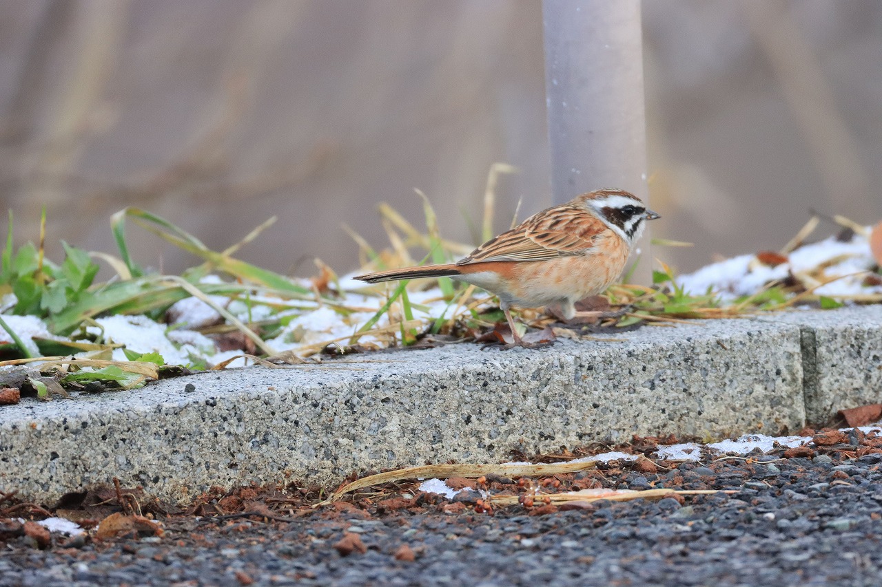 ミヤマホオジロ、旭山では春の渡りの時期は1日から数日見られることがほとんどで、あまり長く滞在はしません。