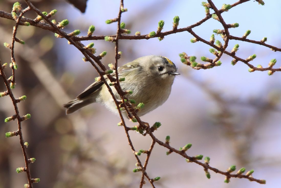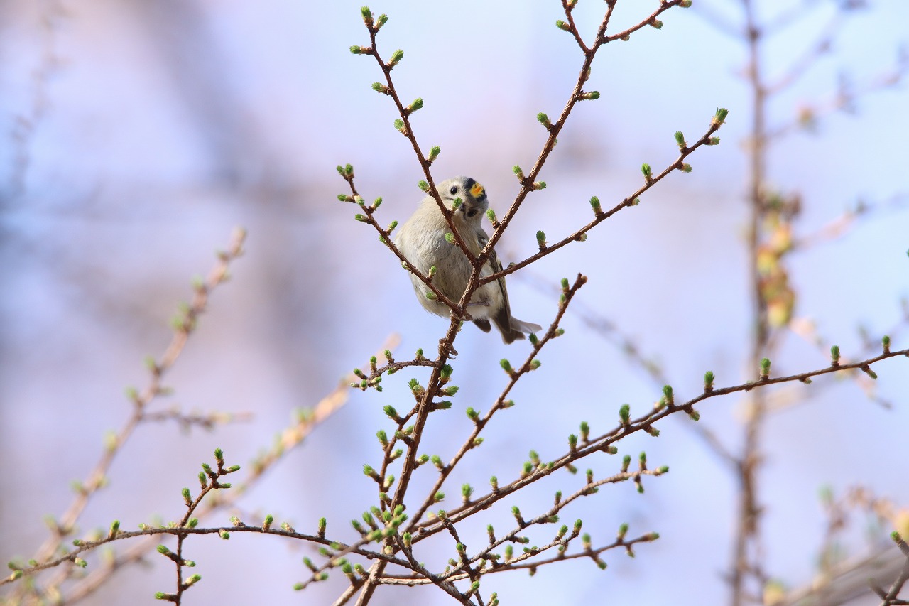 8日土曜日の観察会、キクイタダキが数羽でカラマツの花を食べに来ているのが観察されました。