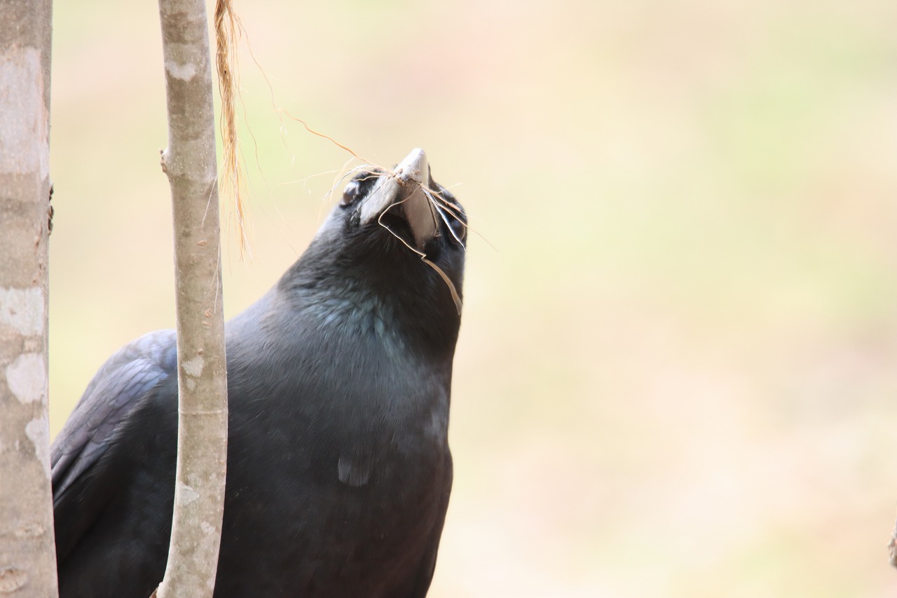 巣材集めをする姿が頻繁に見られるようになりました。