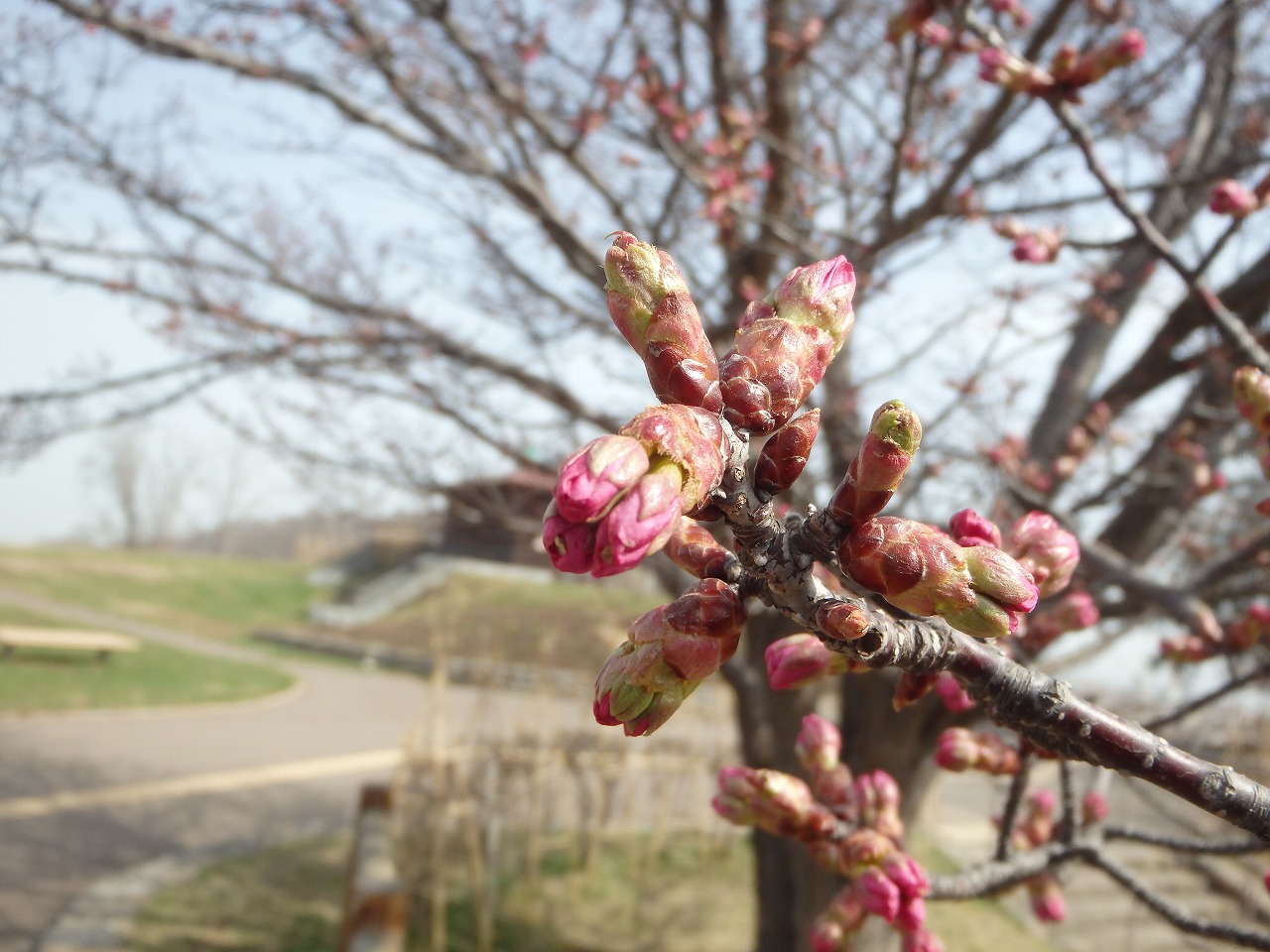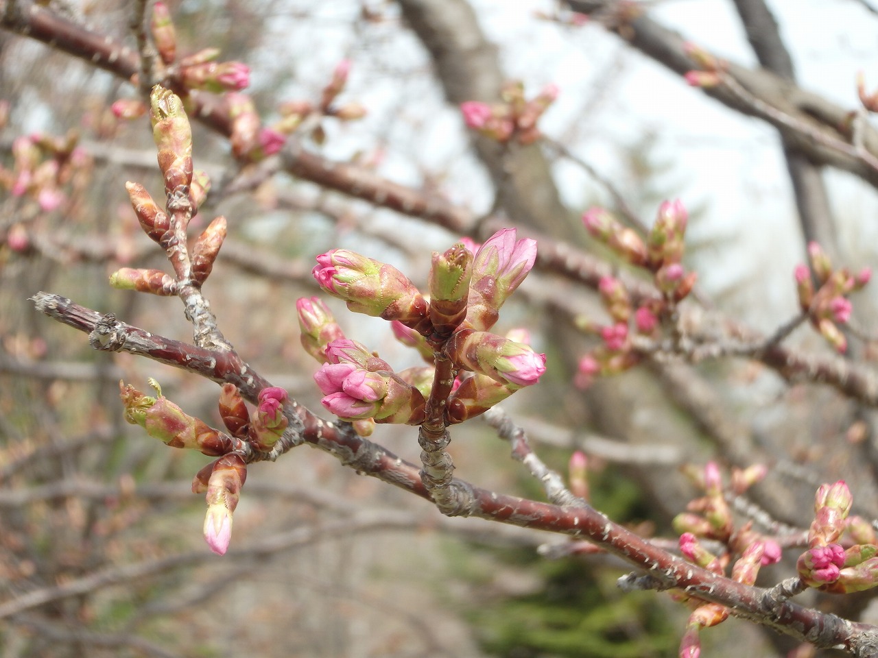 今年も今日から、展望台一本桜を中心とした園内のエゾヤマザクラのようすをお伝えします。