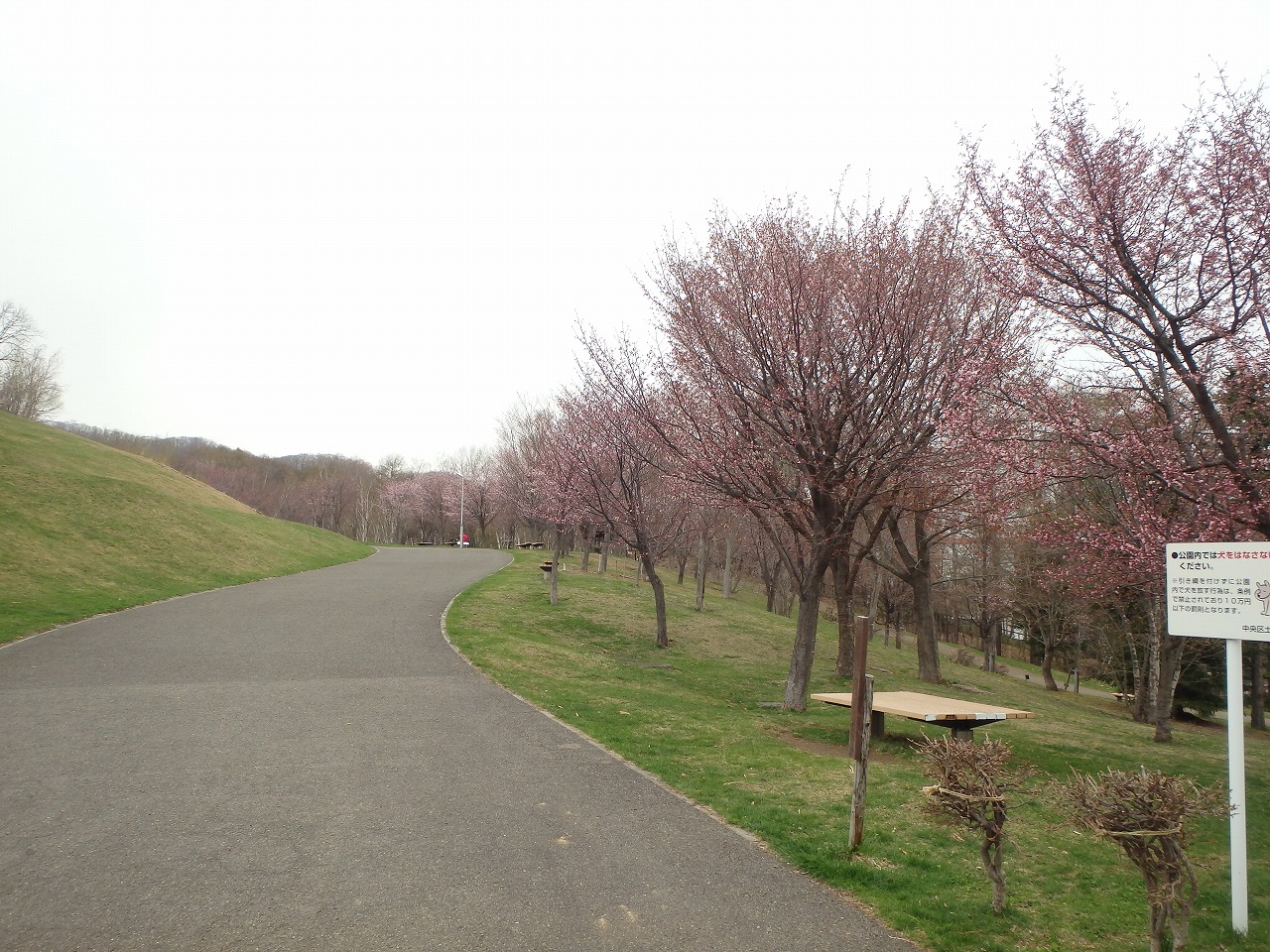 円山と新桜並木の様子。色合いで開花が進んできている様子が分かります。