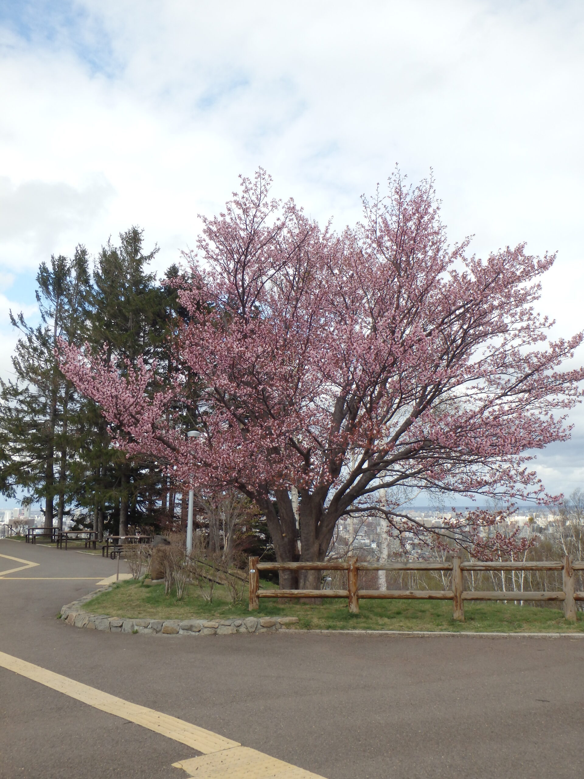 一本桜と藻岩山。