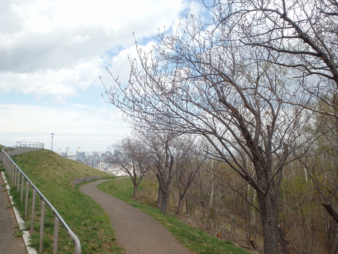 展望台の下、段上テラスの途中から、円山方面を見下ろした様子。