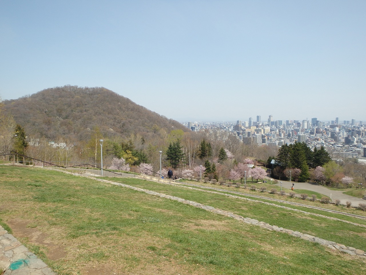 展望台の下、段上テラスの途中から、円山方面を見下ろした様子。
